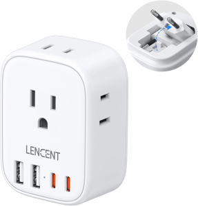 European Travel Plug Adapter, LENCENT International Type-C Foldable Power Plug with 4 Outlets, USB C Charger Adaptor